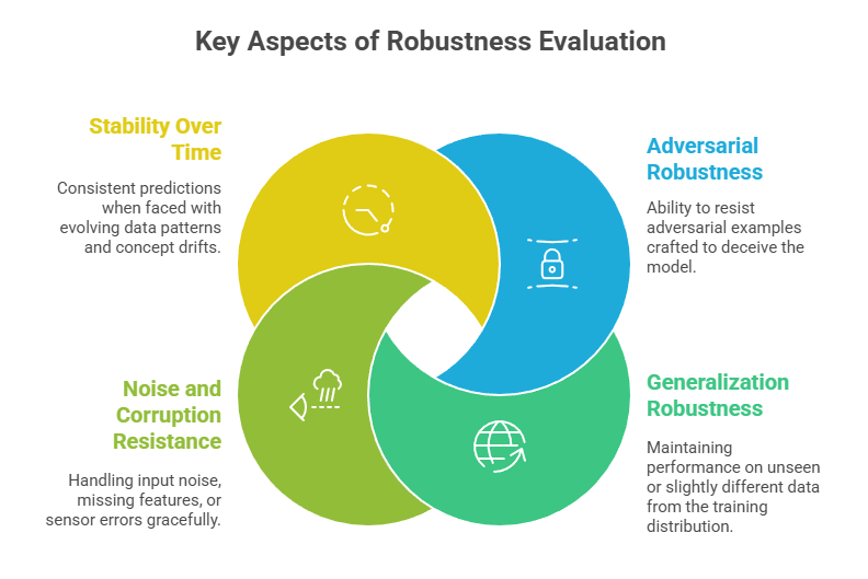 Model robustness encapsulates an ML system’s resilience to variations in input data, distribution shifts, and adversarial manipulations. Robust models deliver consistent and reliable outputs under diverse conditions, which is critical for applications in security, healthcare, finance, and autonomous systems.