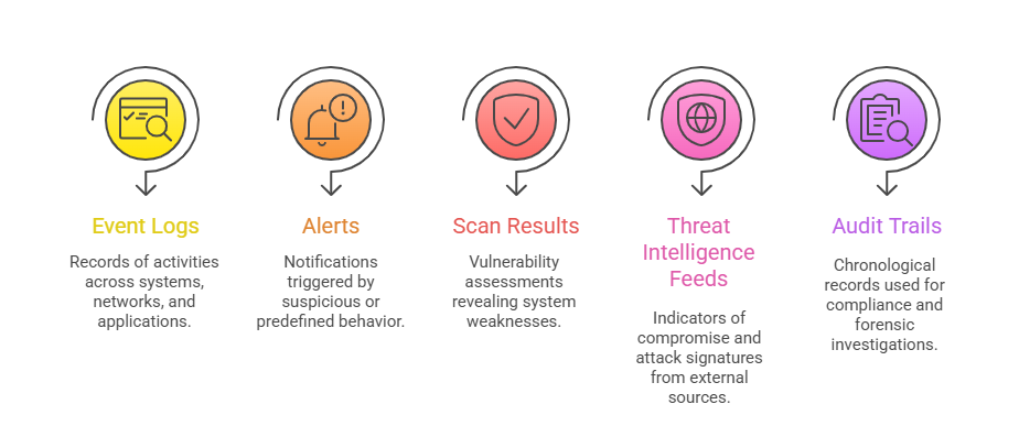 These outputs provide critical raw and contextual data essential for security operations centers (SOC) to detect and respond to threats.