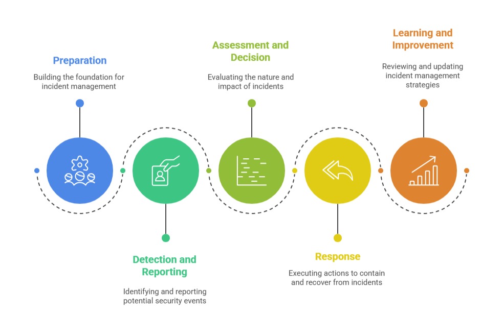 This initial phase focuses on building the foundation for effective incident management. Organizations develop incident management policies, allocate resources, establish incident response teams, and conduct training and awareness programs.