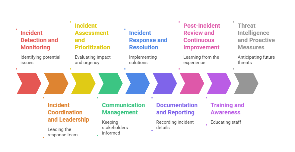 An Incident Manager oversees every stage of the incident lifecycle—from detection to recovery—ensuring swift action and minimal business disruption. Here are the primary roles and responsibilities that support efficient incident handling.