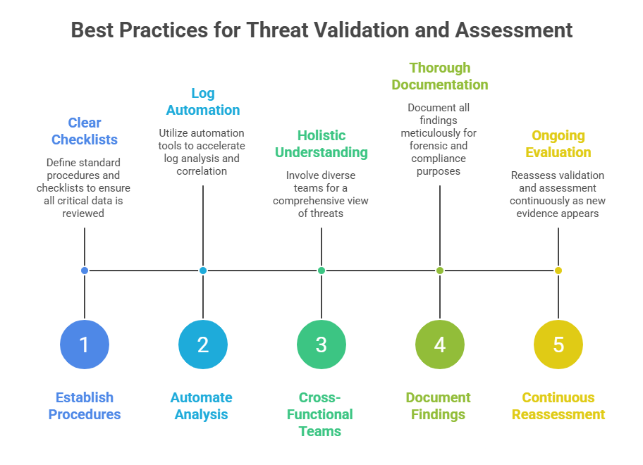 The validation phase involves verifying the security event using multiple techniques to ascertain its legitimacy: