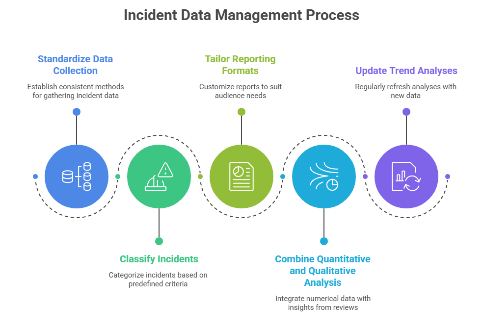 2. Categorization and Classification: Organize incidents by type (e.g., phishing, malware, insider threats), severity, affected assets, or business units. Classification enables focused trend examination and prioritization.