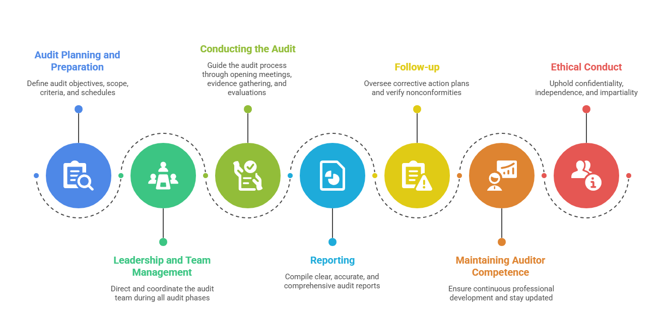 Leadership, technical expertise, and ethical conduct form the foundation of a Lead Auditor’s duties. The list below highlights the essential functions involved in this role.