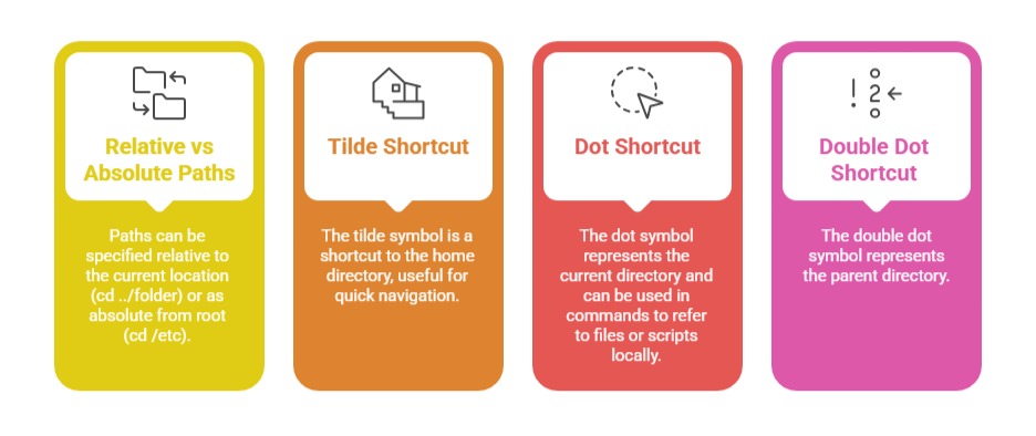 cd /path/to/directory: Moves directly to the absolute path specified.