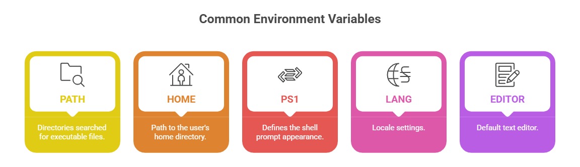 fiEnvironment variables are key-value pairs that influence the behavior of the shell and applications. Bash reads them during initialization and allows users to set or modify them.
