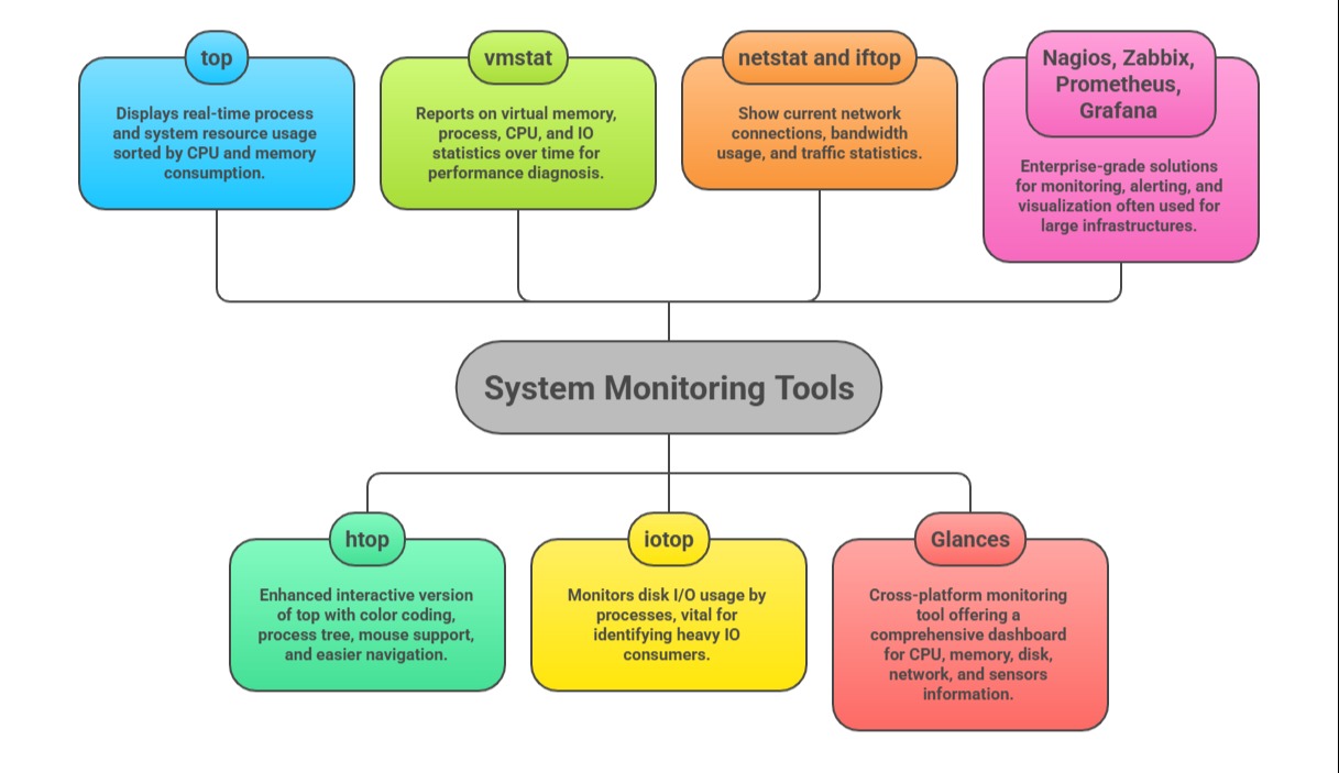 Leveraging these tools effectively enables system administrators and developers to proactively manage resources, detect anomalies, and optimize system operations.