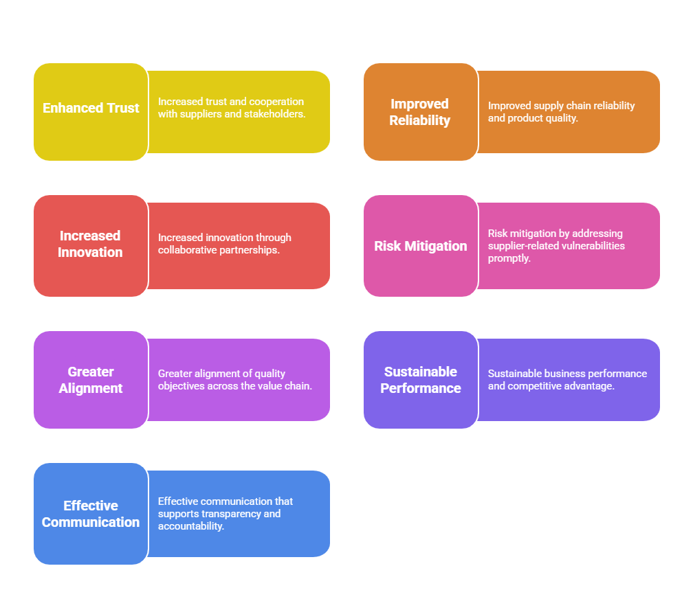 This process includes risk-based supplier selection and evaluation, ongoing performance monitoring, and joint problem-solving initiatives that enhance product quality, reduce risks, and optimize supply chain efficiency.